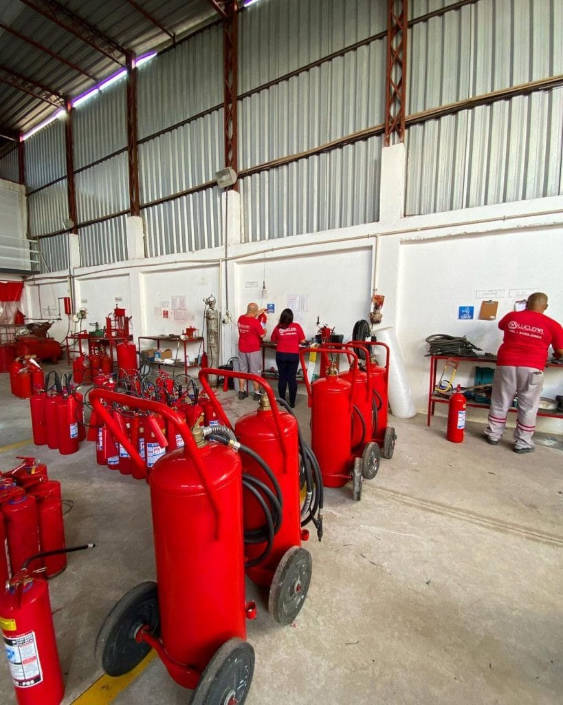 Manutenção periódica e completa de extintores, garantindo que estejam prontos para uso e em conformidade com as normas de segurança.